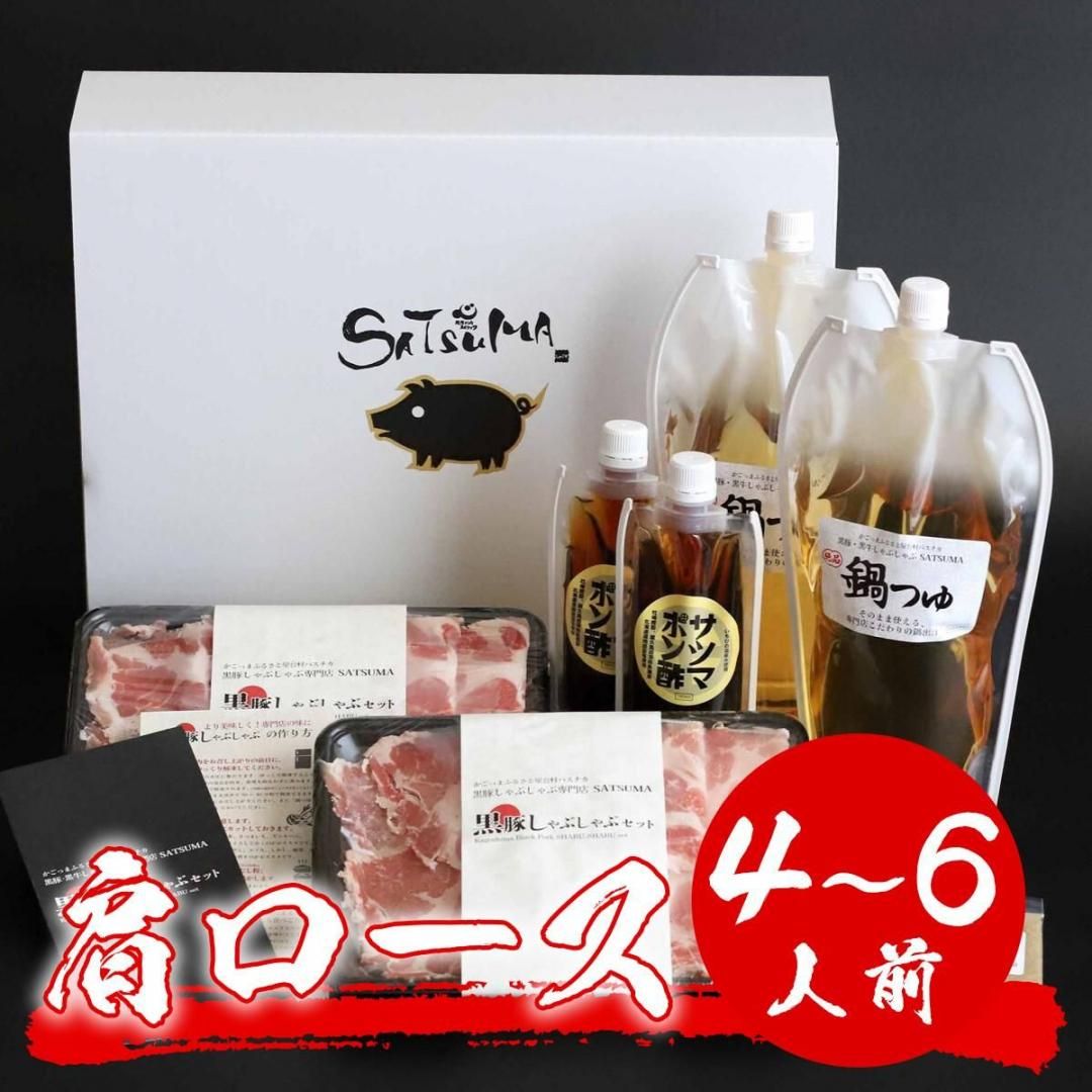 | 内容量 | 黒豚肩ロース(400グラム×2パック)、サツマポン酢(180ミリリットル×2本)、鍋つゆ(1000ミリリットル×2本)、粉末だし(100グラム×2袋) |