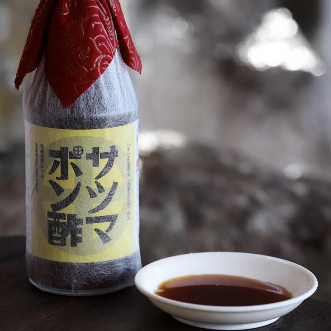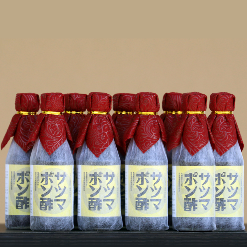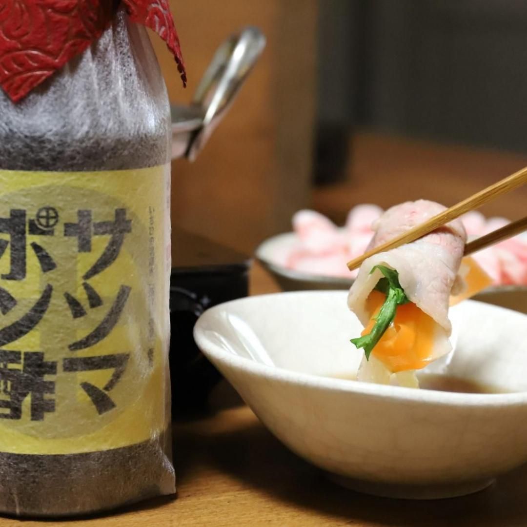 薩摩川内市ふるさと応援店認定1号店で、「かごっまふるさと屋台村」で10年以上愛されてきた黒豚・黒牛しゃぶしゃぶ専門店SATSUMAのオリジナルポン酢。指宿産の鰹荒節と、北海道道南産の昆布を絶妙なバランスでブレンドし、超軟水の天然アルカリ温泉水でじっくりと旨み・まろやかさを引き出しました。さっぱりと香りのよいオレンジを使い、酸味を絶妙に抑えたことで、「飲み干したくなる」ほど美味しいポン酢に仕上がっています。