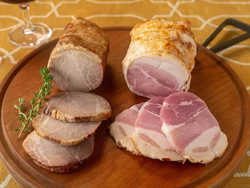 なかでもおすすめしたいのは、鹿児島県産黒豚焼豚と黒豚ローストポーク。黒豚ならではの上品な甘みと、焼豚の香ばしさ、ローストポークのしっとり感が楽しめるセットで、食卓に並べるだけでちょっと特別な気分になれそうな一品です。自宅用にはもちろん、贈りものにもよろこばれそうです。