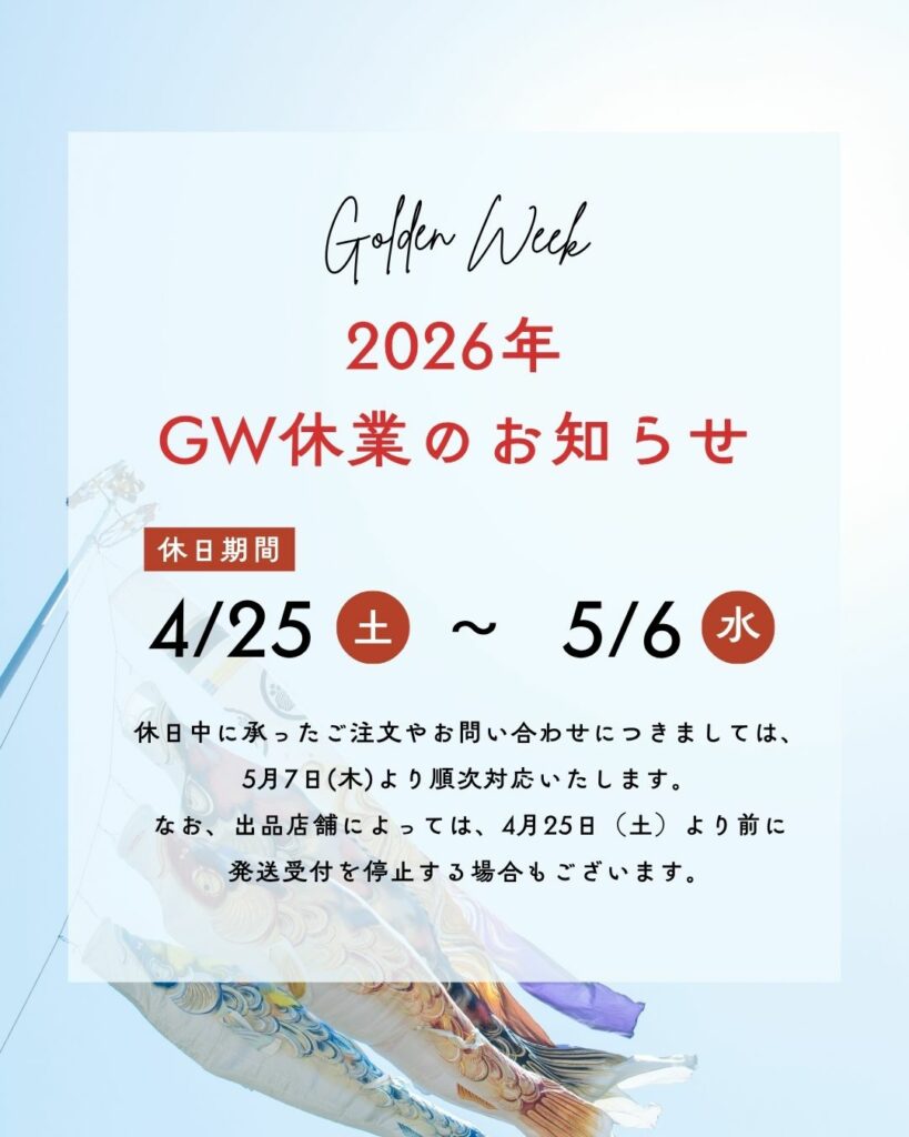 なお、出品店舗によっては、4月25日(土)より前に発送受付を停止する場合もございます。